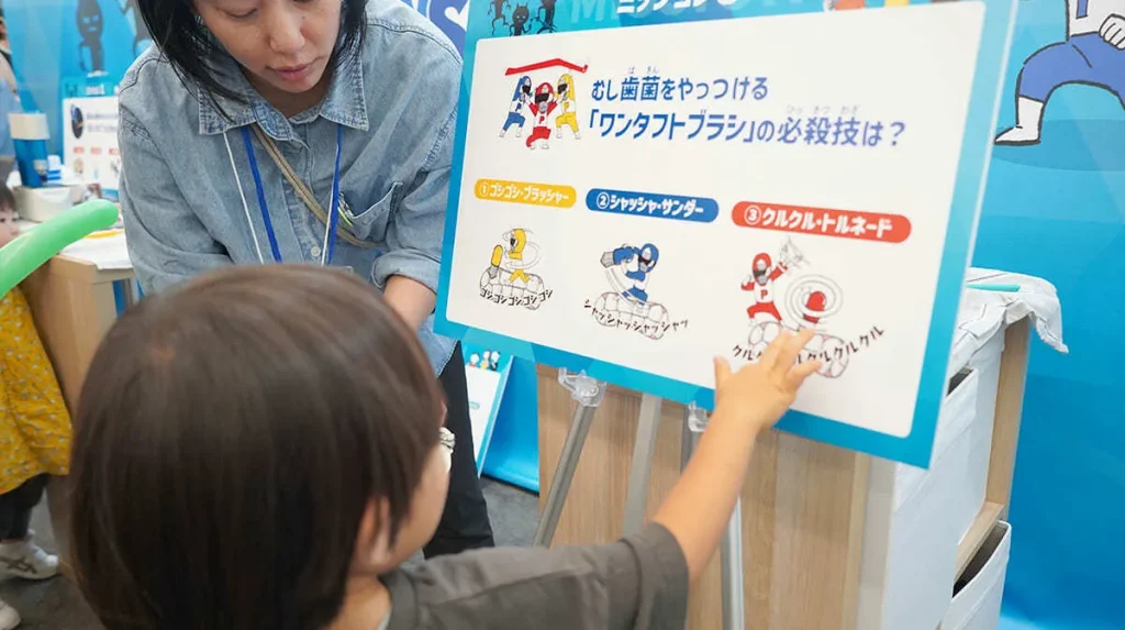 今回のブースは、小学生向けお口予防ラボ「TANOSHI(タノシー)」のプログラムの一部。今年8月から定期開催している取り組みで、楽しい体験を通じて「自分の口の健康を自分の手で守っていく」マインドと行動力を育みます。