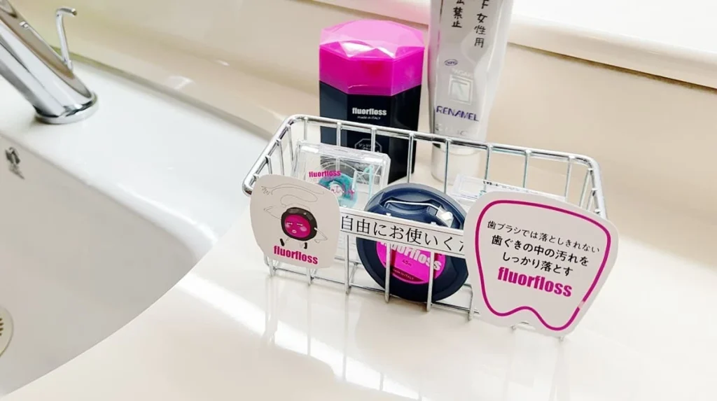 単にフロスを設置するだけでなく、つい手を伸ばしたくなるポップを添えて“やってみようかな”を引き出します。
