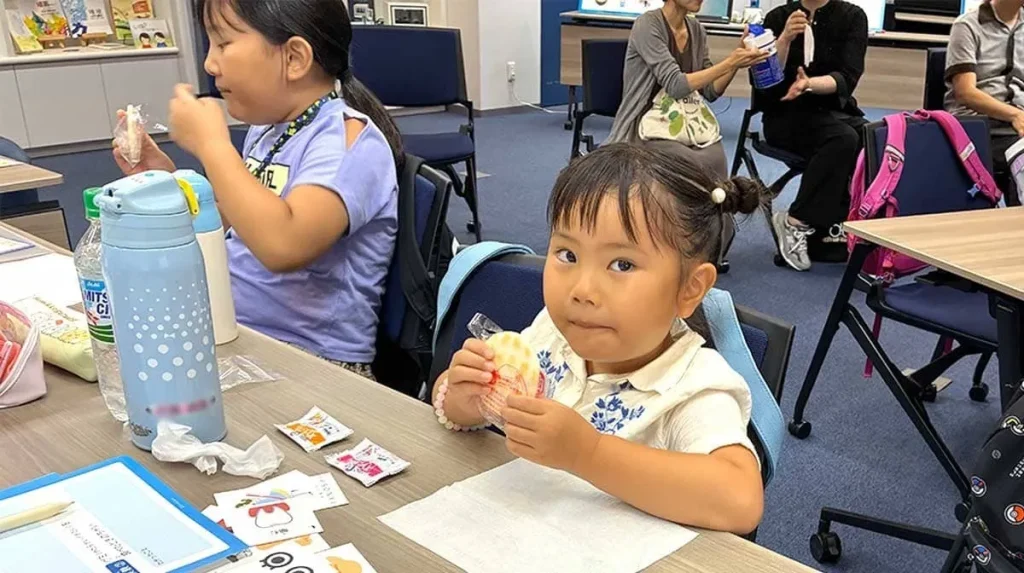 そういって配られたのはグミでした。『なめる』と『噛む』ではおいしさが変わるのでしょうか。