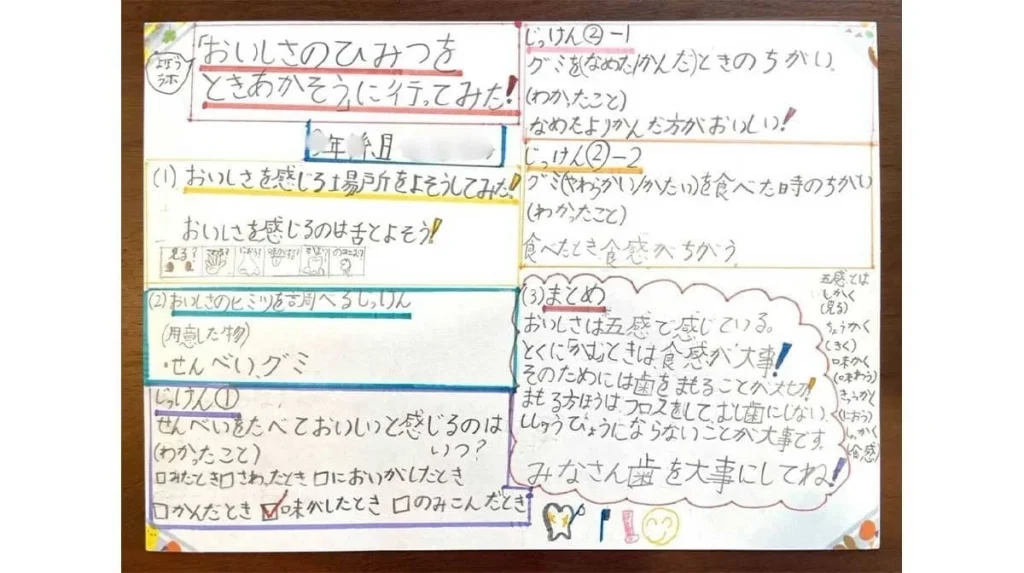 実験①のところに書いてくれた、『いつも以上に真剣に食べてました』の一言が素敵でした。自分で考えてやってみたからこそ、変わったのかもしれません。これからも親子で歯を守る気持ちを育んでください!